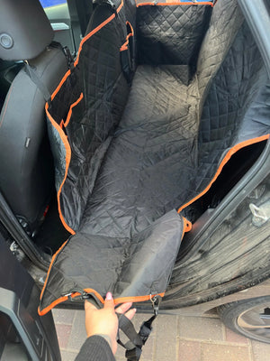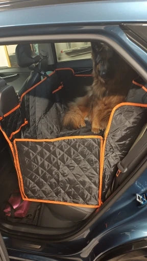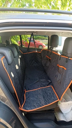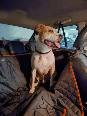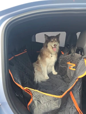 Waterproof, scratchproof dog hammock cover keeps seats clean and damage-free on every drive